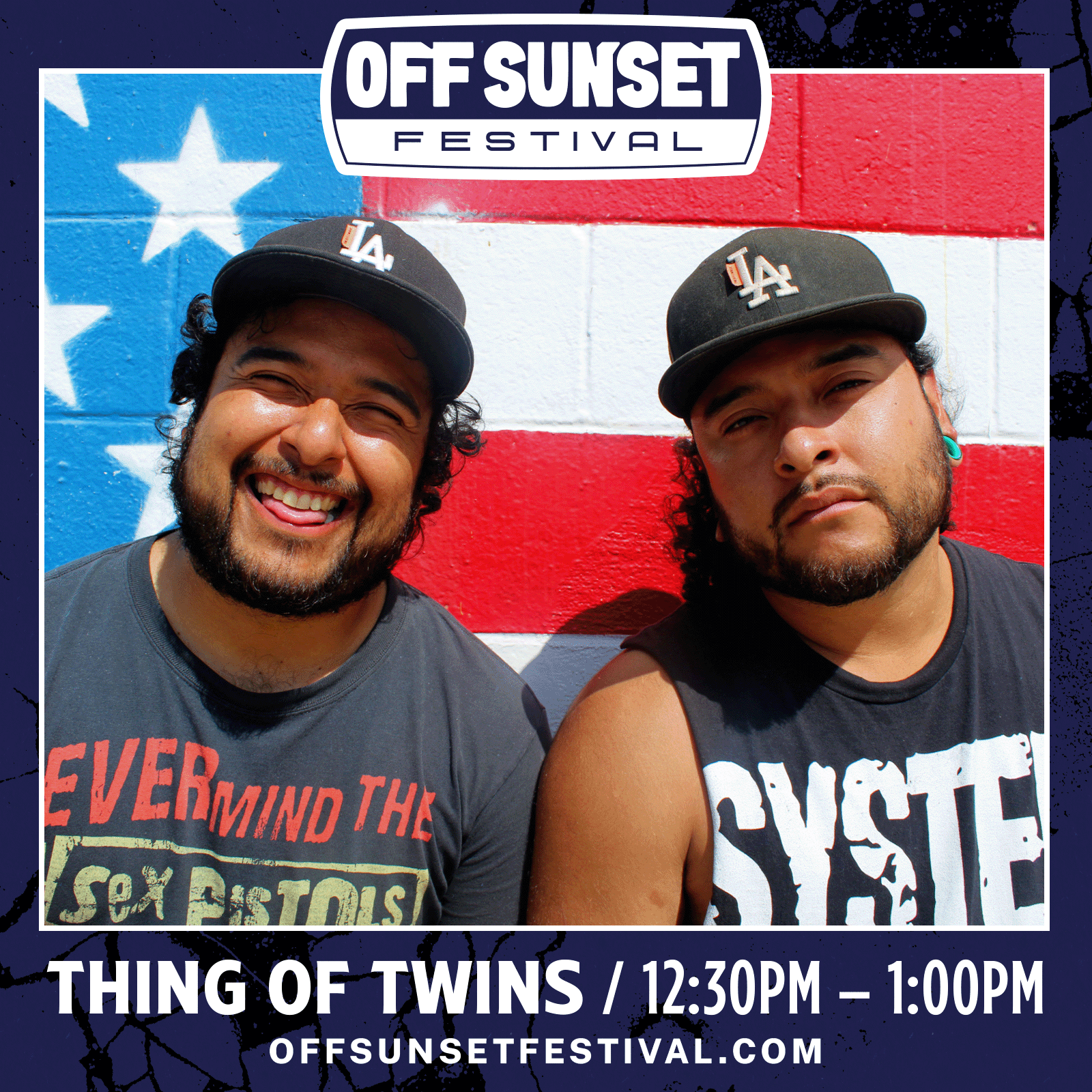 L.A.’s dynamic duo Thing of Twins is an alternative rock band made up of twin brothers Carlos and Lucio Garcia. Channeling the punch of Green Day with the raw power of Royal Blood and The White Stripes, the band delivers high-energy sets packed with grit and infectious hooks.